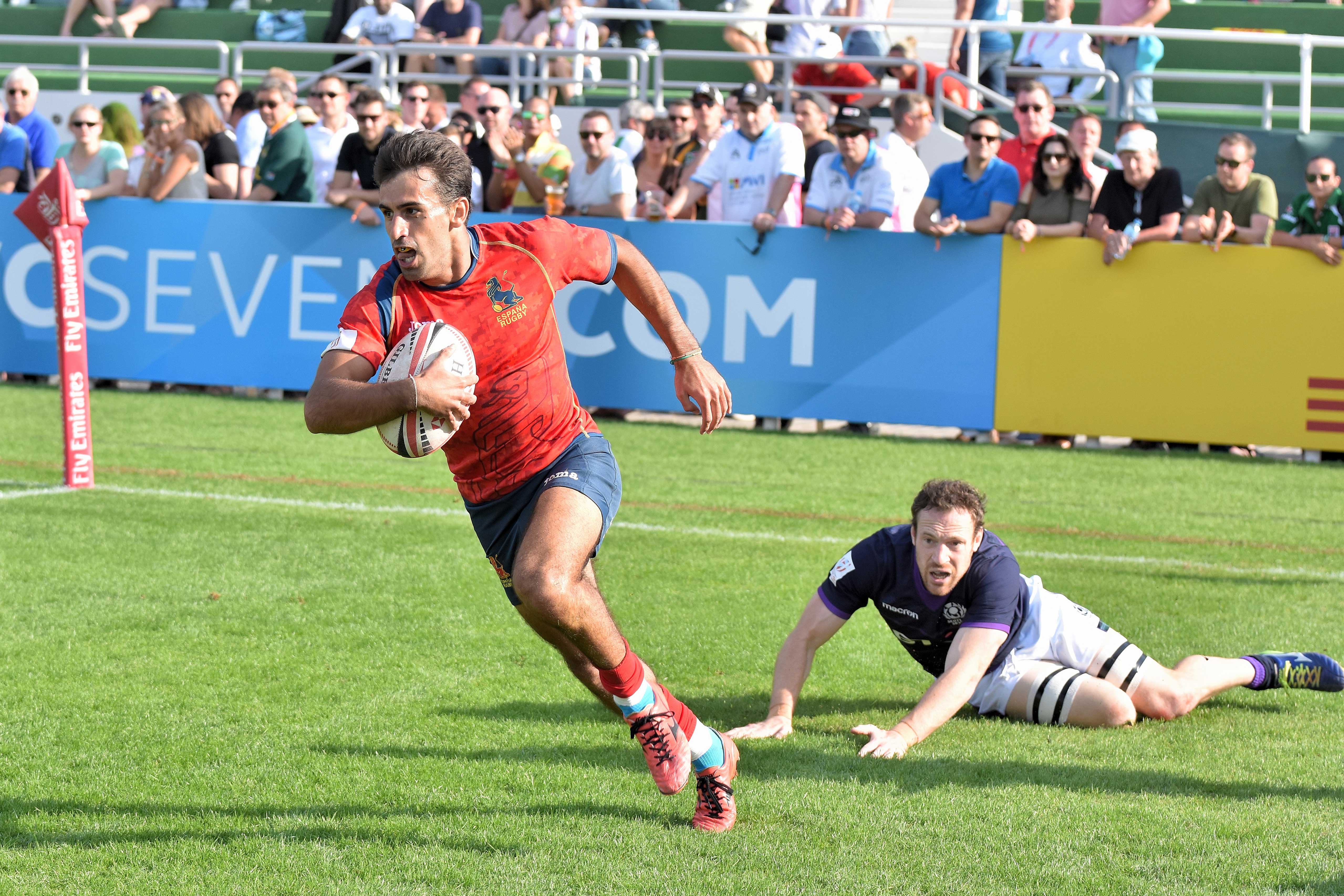 En su segundo partido España sorprendió a Escocia durante la primera parte marchándose al descanso 5-14 gracias a los ensayos de Pol Pla y Javi Carrión, y con la opción de ampliar el marcador en la última jugada pero finalmente la patada a seguir de Pearce salió del campo cuando Pla se quedaba sólo para ensayar a un metro de la zona de marca rival.