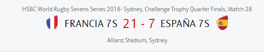 El tercer día de competición no comenzó bien para los leones, que perdieron el partido de los QF que daba acceso a la lucha por la novena plaza ante Francia 21-7 A pesar de haber monopolizado la posesión en varios momentos del juego los hombres de Feijóo no fueron capaces de encontrar huecos en la defensa francesa ni de convertir las oportunidades que tuvieron cerca de la línea de ensayo. Los españoles siguen sin encontrar sensaciones en ataque pese a la buena circulación de balón que han demostrado.