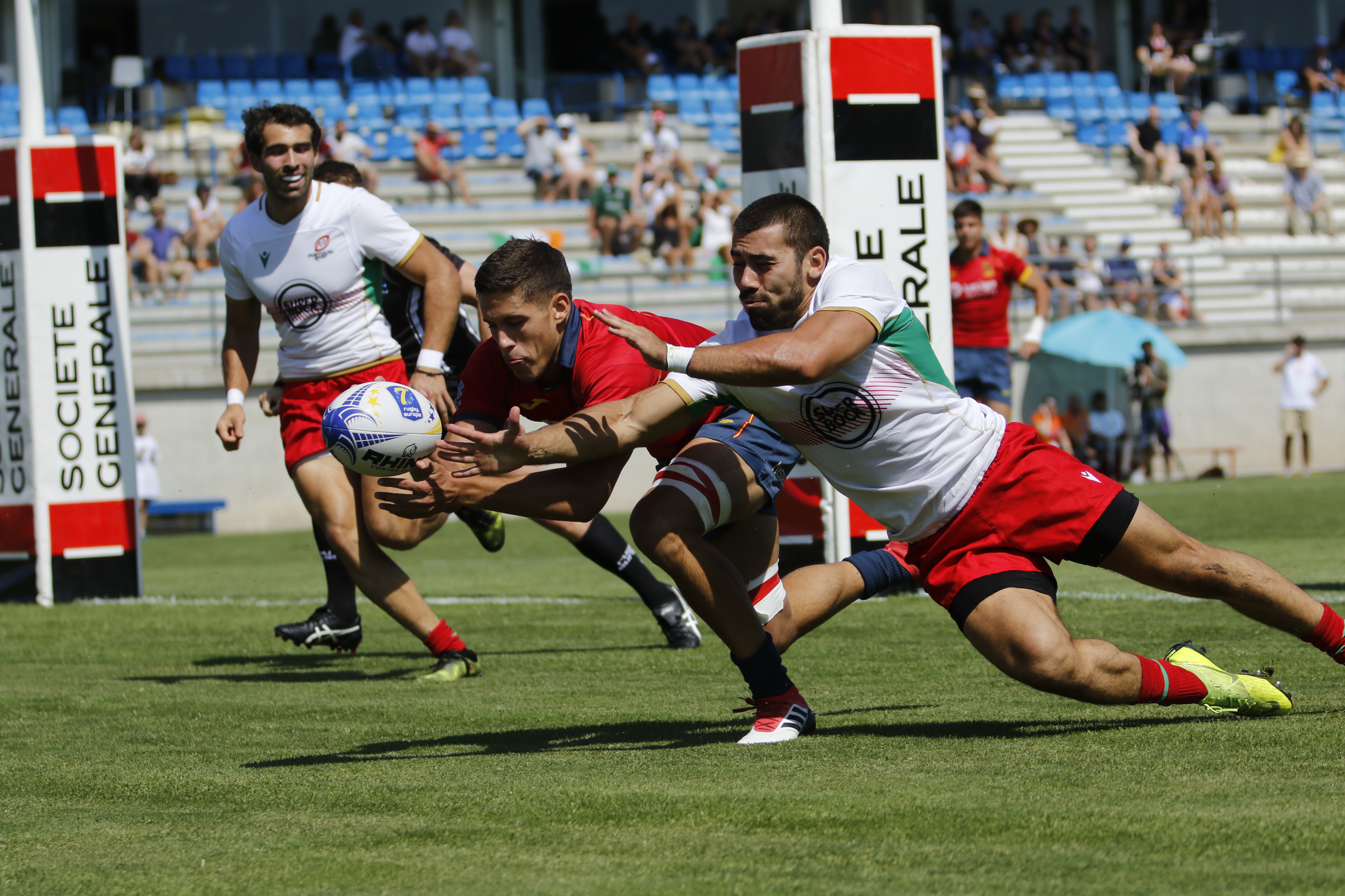 Marcador: Min 4 Ensayo y Transformación Portugal 0-7// Min 5 Ensayo y Transformación Porgual 0-14// Min 11 Ensayo POGGI 5-14.