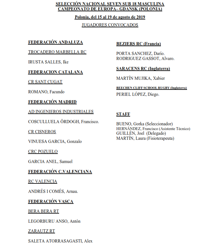 Este fin de semana llega la cita más importante del año para la Selección masculina de seven sub-18, en Gdansk. El equipo de Gorka Bueno, ya en tierras polacas, se dispone a participar en el Campeonato de Europa de su categoría tras completar en la Universidad Autónoma de Madrid su última concentración dentro de una temporada con una preparación muy amplia.