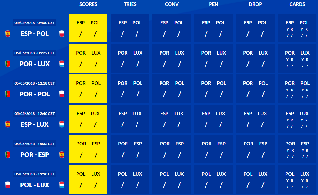 Los nuestros han quedado emparejados junto a Portugal, Polonia y Luxemburgo en el Pool D. La jornada del sábado, como suele ser habitual, albergará la Fase de Grupos al completo. A expensas de cambios que Rugby Europe pueda realizar en los horarios actualmente publicados, España debutará frente a Polonia a las 09:00 (hora española), después jugará contra Luxemburgo a las 12:40 y concluirá la jornada frente a Portugal, a las 15:36.