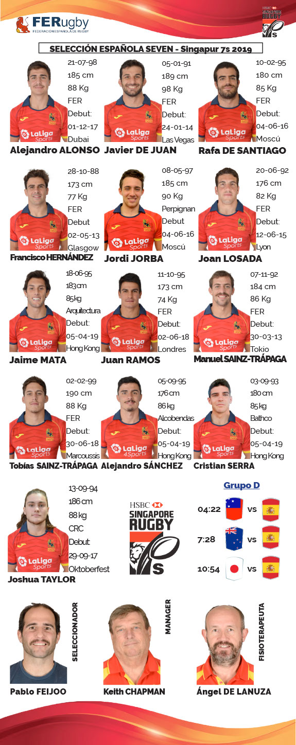 La acción no descansa para la Selección masculina de Seven, que tras quedar en 13ª posición en Hong Kong quiere mejorar este resultado en la Serie Mundial de Singapur, del 13 al 14 de abril. Aunque no sea un objetivo sencillo, los de Pablo Feijoo luchan por estar en los Cuartos de Final Oro del domingo, lo que supondría quedar entre los ocho primeros y sumar los puntos suficientes para prácticamente dejar finiquitada la permanencia en las HSBC World Rugby Sevens Series.