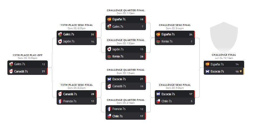 La gran noticia es que dentro del campo pudimos ver juntos a los tres jovencísimos debutantes en una Serie Mundial, Dani Barranco, Juan Martínez y Diego Periel, quienes jugaron con mucha soltura y desparpajo. Cabe recordar que la Selección de Pablo Feijoo estrenó victoria en las eliminatorias de Las Vegas tras derrotar 19-7 a Gales, un rival que ya conocen muy bien, en los cuartos de final del Challenge. En la semifinal contra Kenya los nuestros también dominaron, llevándose el partido 24-7 y ganándose el pase a la mencionada final del Challenge contra Escocia.