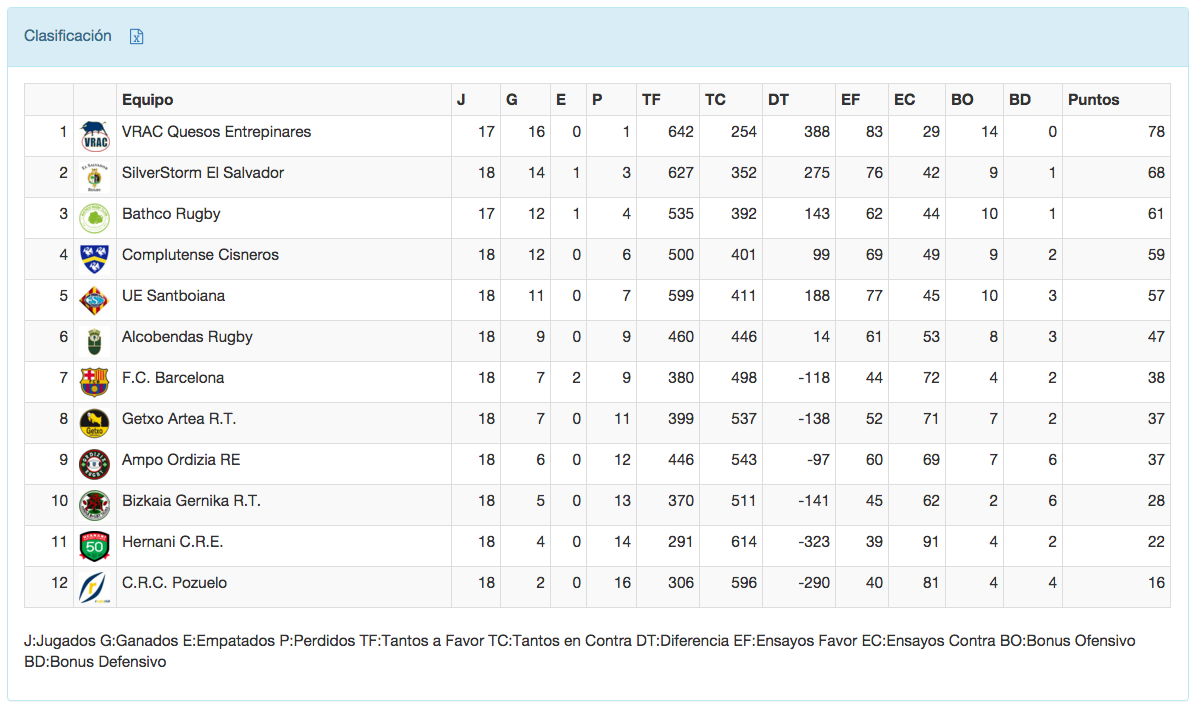 Aprovechándose del tropiezo de los hombres de Dani Vinuesa el Bathco Rugby asciende una posición y se pone tercero gracias a su contundente victoria frente a la UE Santboiana y confirmándose, de esta manera, como el segundo mejor equipo de la segunda vuelta por detrás sólo del VRAC.