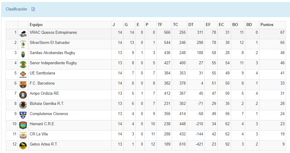 También a las 12:00 los hombres de Tristán Mozimán cumplían en San Román en un festival de ensayos por parte de los dos equipos. Los getxotarras se fueron al descanso sólo un punto abajo tras firmar una primera parte muy seria, pero en la segunda mitad los verdi blancos consiguieron posar tres ensayos más sentenciando el encuentro 46-31.