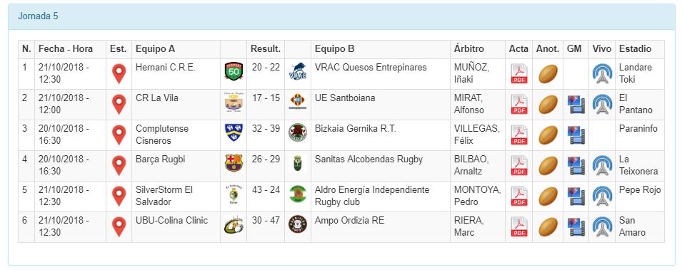 La quinta jornada de la Liga Heineken empezó tan emocionante como prometía. Los dos partidos del turno del sábado entre equipos situados de forma consecutiva en la clasificación y se resolvieron por un estrecho margen, en ambos casos a favor del visitante. En cuanto a los cruces del domingo, todos los equipos sufrieron para ganar, excepto el SilverStorm El Salvador, que en la segunda mitad superó holgadamente a los bisontes del Aldro Energía Independiente para mantener su condición de líder.