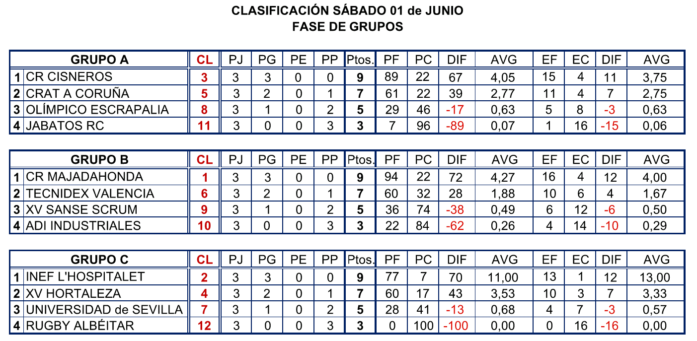Entre las ocho primeras también se han clasificado para los cuartos de final de oro las campeonas en Oliva, CRAT UDC, Tecnidex Valencia, XV Hortaleza, y los dos mejores terceros, Olímpico y Universidad de Sevilla.