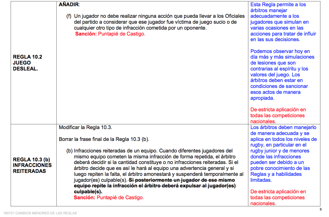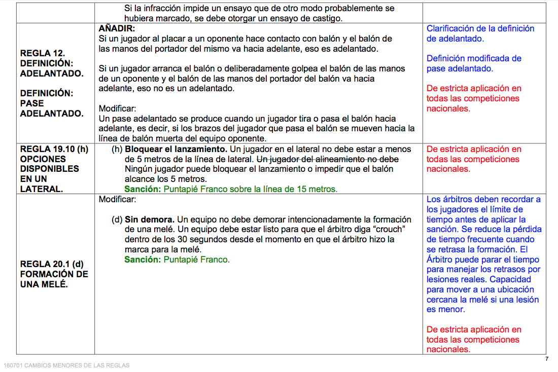 El Comité Nacional de Árbitros nos recuerda que a partir del 1 de Julio han cambiado ciertas reglas del Juego desde World Rugby y han elaborado un documento para facilitarnos la adaptación a las nuevas normas.