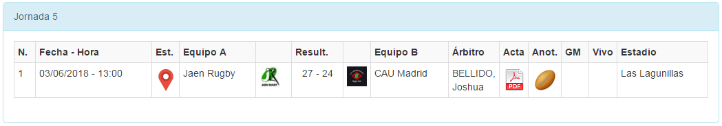 Por último, la final por ascender al Grupo C de DHB tuvo el resultado más parejo de los choques de ida: 27-24 para el Jaén Rugby. La alternancia en el dominio del juego fue una constante y ello se vio reflejado en el marcador. No en vano, se dieron hasta cuatro cambios de liderazgo en el mismo. Los locales consiguieron irse al descanso por delante gracias a un inicio muy sólido, un acierto extraordinario en los últimos metros y una defensa muy bien plantada. A pesar de ello, el CAU Metropolitano nunca se vino abajo y trató de contestar todos y cada uno de los golpes jienenses. Si bien el primer tercio del partido fue ligeramente dominado por los locales, y el central por los visitantes, la igualdad fue imperante durante los últimos 15 minutos. Finalmente, Jaén Rugby se llevó la ventaja en el tanteo y los madrileños sobrevivieron a una prueba muy dura fuera de casa y a la expulsión definitiva en el minuto 67.