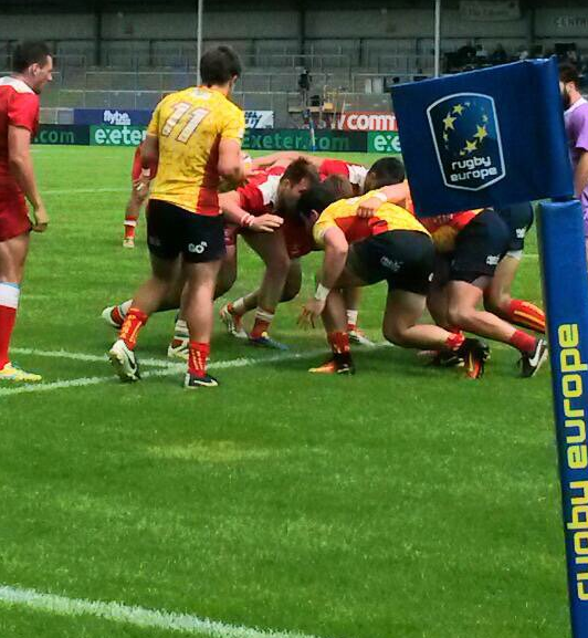En su segundo partido en Exeter los Leones se enfrentaban ante los primeros del circuito europeo, Rusia, a la que han ganado 14-21 confirmando el buen momento de España que supo sacar provecho a la presión defensiva de los Osos, jugando sobre los espacios con mucha continuidad. Losada abría el marcador nada más comenzar el encuentro culminando una preciosa jugada del Pablo Fontes y César Sempere ponía el 0-14 en el marcador en la última jugada de la primera parte. En la segunda Rusia despertó y por medio de Davidov logró dos ensayos contestados por uno de España, por medio de Glen Rolls, que aseguraba la victoria.