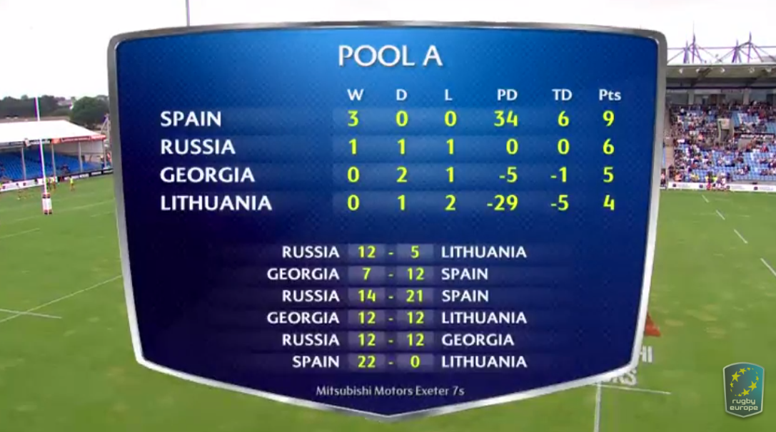 España se enfrentaba en su Debut en Inglaterra a su verdugo en semifinales de Plata en Moscú7s, la siempre dura y combativa Georgia, y después de unos primeros minutos de igualdad Pablo Fontes rompía ese equilibrio antes del descanso. Con el segundo tiempo llegó la reacción de los Lelos que conseguían un ensayo transformado que les ponía por delante a falta de 6 minutos para el final, pero la Selección respondía al instante gracias a un ensayo de Villanueva que transformaba Paco Hernández y que ponía el 7-12 final.