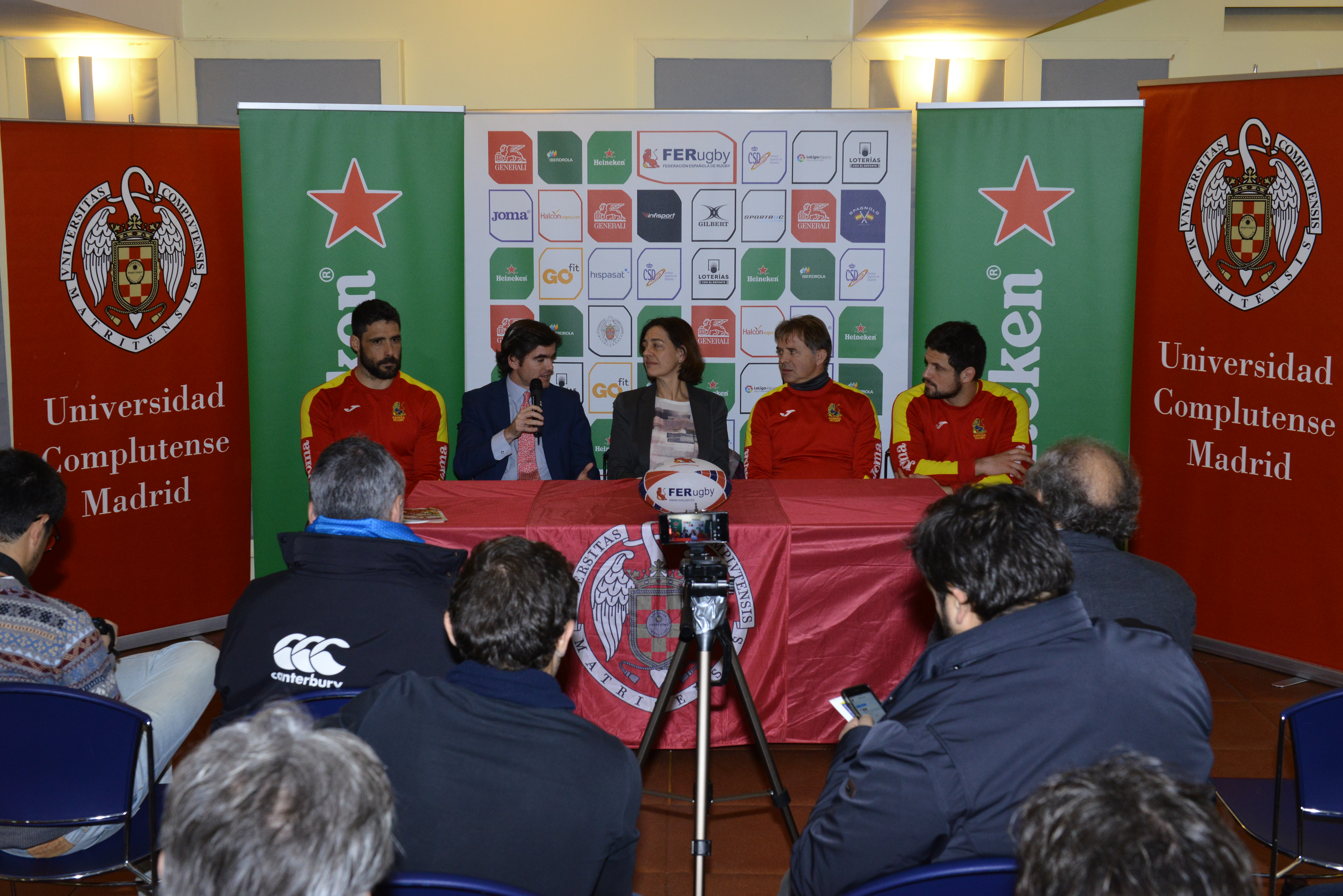 Esta mañana en el Campo Central de la Universidad Complutense de Madrid ha tenido lugar la Rueda de Prensa de presentación del partido España vs Rumanía, que se jugará este domingo a las 12:45 en el mismo terreno de juego de Madrid. Al acto han asistido María Nagore Ferrer, Vicerrectora de Extensión Universitaria, Cultura y Deporte de la UCM, Jaime González Castaño, Director General del Consejo Superior de Deportes, Santiago Santos, Seleccionador Nacional, Jaime Nava, Capitán de la Selección, y Gautier Gibouin, Vicecapitán de los Leones.