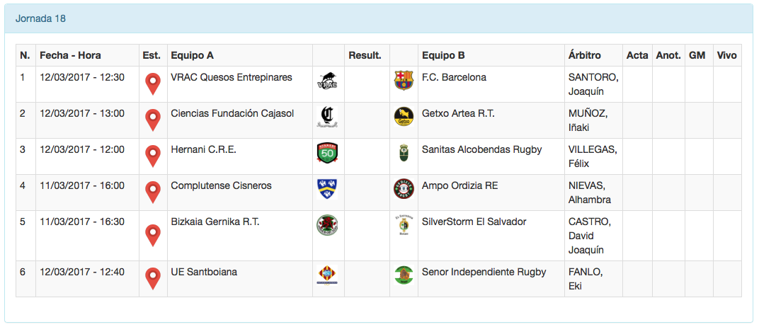 Llega la decimoctava jornada de Liga después del descanso por el partido del XV del León en el Rugby Europe Championship que sirvió para que el líder, SilverStorm El Salvador, recuperase su partido pendiente con el, hasta la semana pasada, colista Getxo Artea y donde los getxotarras dieron la sopresa llevándose la victoria y saliendo de la parte baja de la clasificación. Cuando tan sólo quedan cinco jornadas para acabar la fase regular sólo habrá un duelo directo por un puesto y será el que enfrente, precisamente al antiguo farolillo rojo de la clasificación, Getxo, ante el undécimo clasificado, Ciencias Fundación Cajasol.
