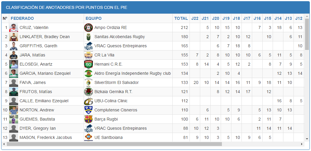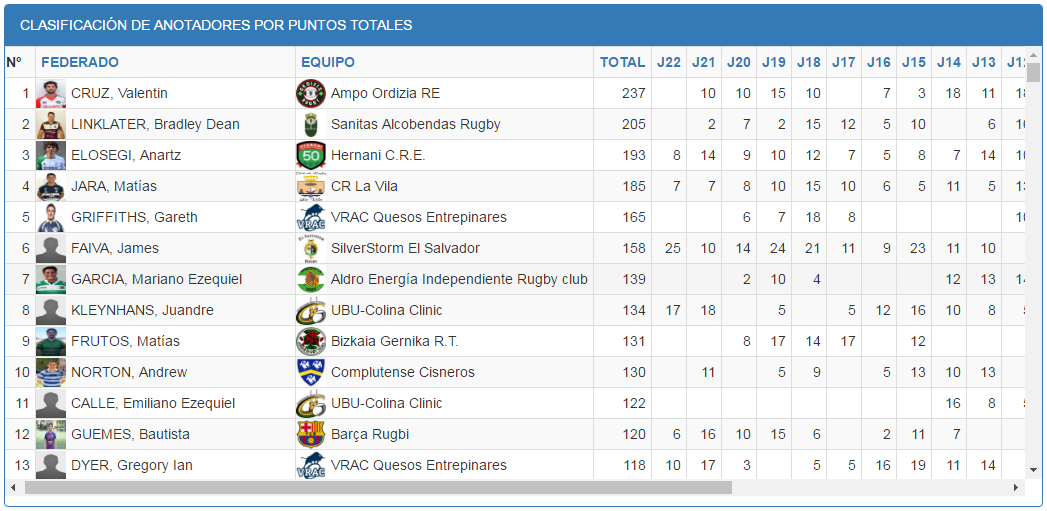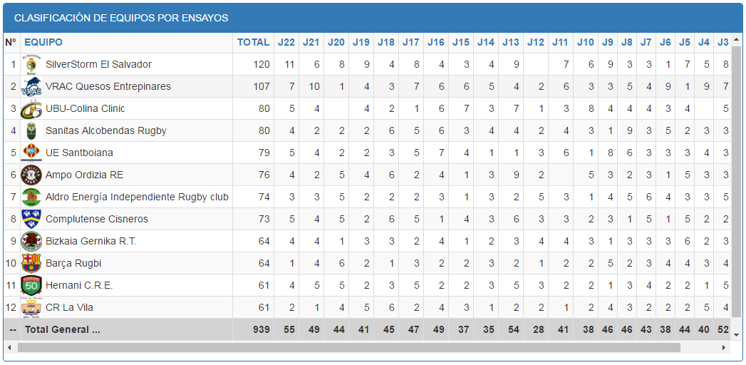 Otros datos a destacar son, por ejemplo, la gran capacidad anotadora de Aparejadores, que sin duda ha firmado uno de las mejores debuts en la máxima categoría de nuestro rugby que se recuerdan, o la baja posición del Barça en estas estadísticas, lo cual resalta aún más algo que venimos destacando todo el año, la impresionante solidez defensiva de los de Sergi Guerrero, que les sirve para seguir vivos en las dos principales competiciones.