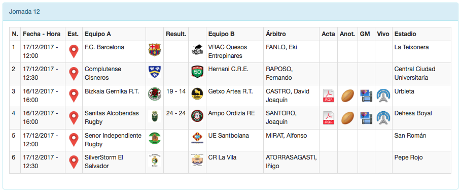 Tan sólo dos partidos adelantados al sábado en la decimosegunda jornada de la Liga Heineken: en Urbieta Bizkaia Gernika pudo remontar el 0-14 a favor del Getxo Artea con el que se llegó al descanso y gracias a dos ensayos de Joaquín Palisa y otro de Xabier Albizua cerraban el marcador en el 19-14 final. En el polideportivo Dehesa Boyal de San Sebastián de los Reyes el AMPO Ordizia también remontó un resultado adverso 24-10 a favor del Sanitas Alcobendas Rugby para acabar empatando 24-24.