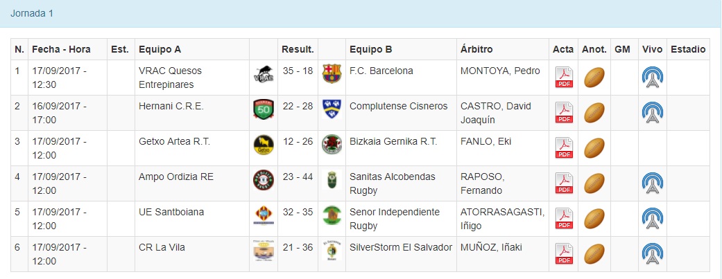 Cuatro encuentros se han disputado a las 12 abriendo la jornada dominical. El AMPO Ordizia y el Sanitas Alcobendas Rugby volvían a verse las caras para iniciar una nueva temporada tal y como hicieron el curso pasado. Volvió a ganar el equipo madrileño y gracias al bonus y a la diferencia de puntos el conjunto de Tiki Inchausti es el primer líder de la Liga Heineken tras ganar 23-44 con una gran segunda parte.