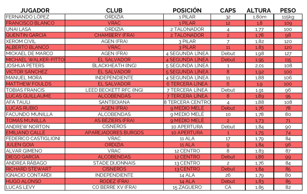 Para esta cita el seleccionador nacional, Santiago Santos, está trabajando con una lista amplia de 29 jugadores, de los que sólo podrá alinear 23, por lo que tendrá una difícil tarea descartando a seis de sus hombres antes del sábado.