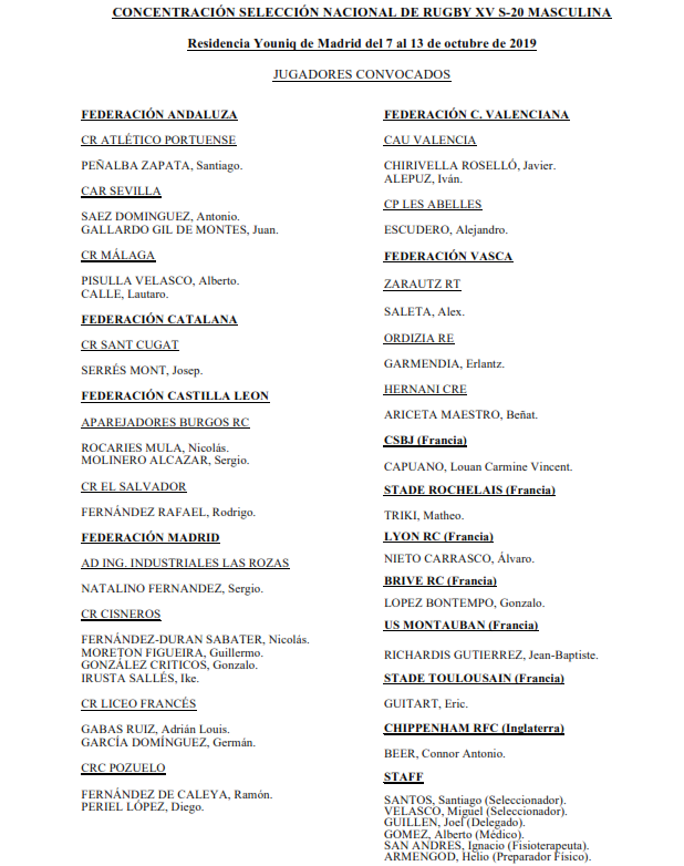La lista de convocados está plagada de jugadores que esta temporada o la anterior han conseguido asentarse en equipos de mucho nivel dentro de nuestro rugby. También hay un número considerable de componentes que forman parte de los combinados "Espoirs" (Esperanzas) de clubes punteros del rugby francés.