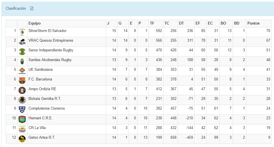 Fadura era el escenario en el que se abría la décimo cuarta jornada de Liga en uno de los partidos a priori más desiguales de la jornada si atendemos a la clasificación y al resultado de la ida, el segundo clasificado SilverStorm El Salvador visitaba al farolillo rojo, Getxo Artea. Los hombres de Juan Carlos Bado aguantaron hasta el minuto 15 e incluso llegaron a ponerse por encima en el marcador, pero los blanqui negros no perdonaron y terminaron posando siete ensayos y llevándose la victoria por un rotundo 10-48.