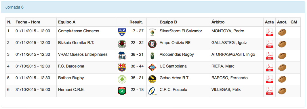 Abriendo la jornada del domingo, derbi colegial y derbi vasco. Los de Complutense Cisneros no lograban asegurarse una victoria en casa contra un rival directo de la competición como es SilverStorm El Salvador. A pesar de haber recuperado a la mayoría de los jugadores internacionales y de irse al descanso con marcador de 12 a 18; la cantidad de golpes de castigo y las expulsiones temporales de los de azul y azul hacían que el apertura Sam Katz alejara poco a poco a los chamizos en el marcador, sentenciando el partido con un drop desde medio campo en los minutos finales; y dejando el marcador en el definitivo 17 a 27.