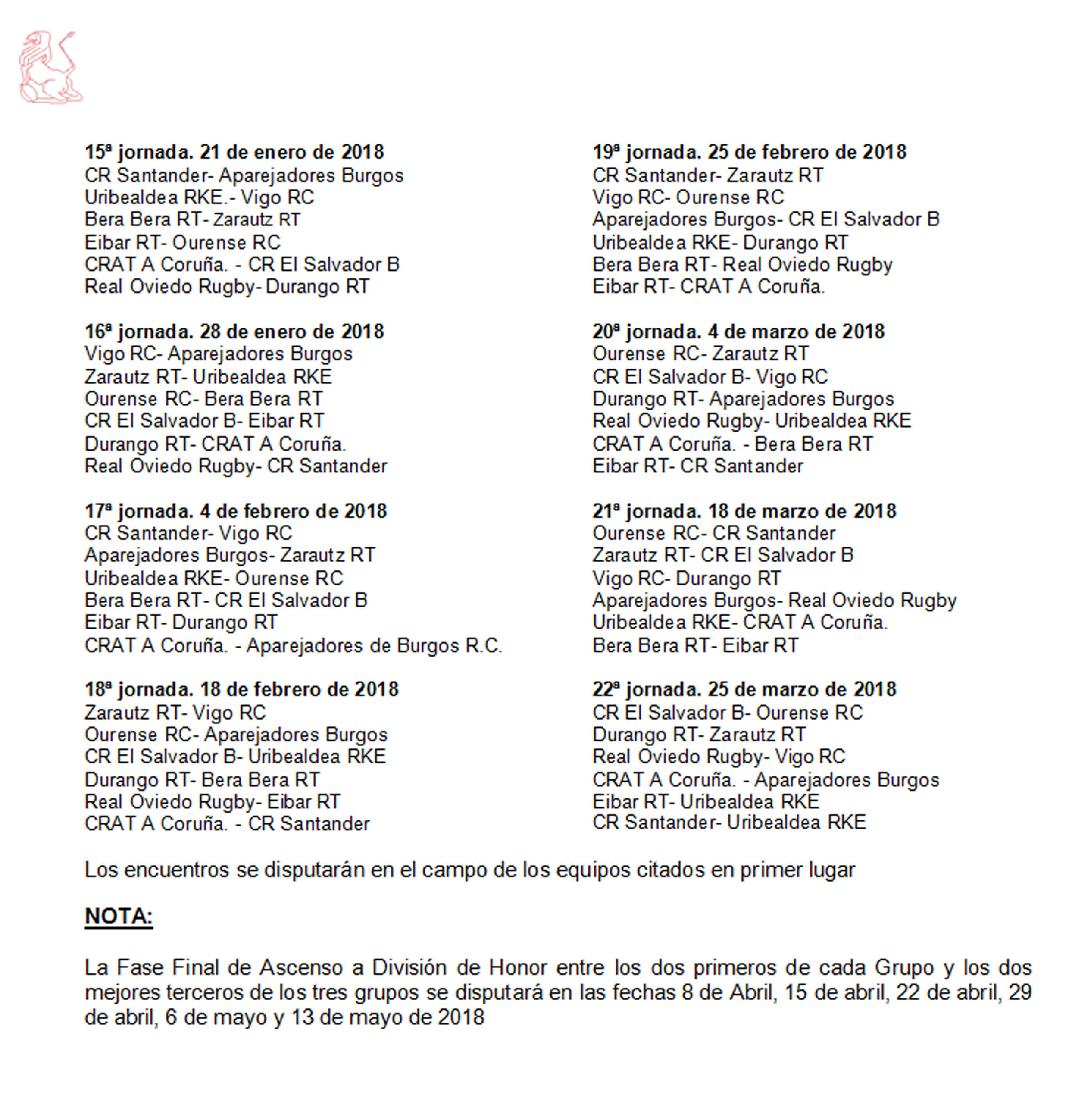 En la segunda división del rugby español 36 equipos lucharán un año más por hacerse con una plaza en la categoría reina. El Ciencias Fundación Cajasol vuelve a la DHB y junto a él se suman 4 equipos a la competición. En DHB A asciende el CR Santander, en DHB B El Toro RC e Inter RC y en DHB C C.D. Universidad de Granada