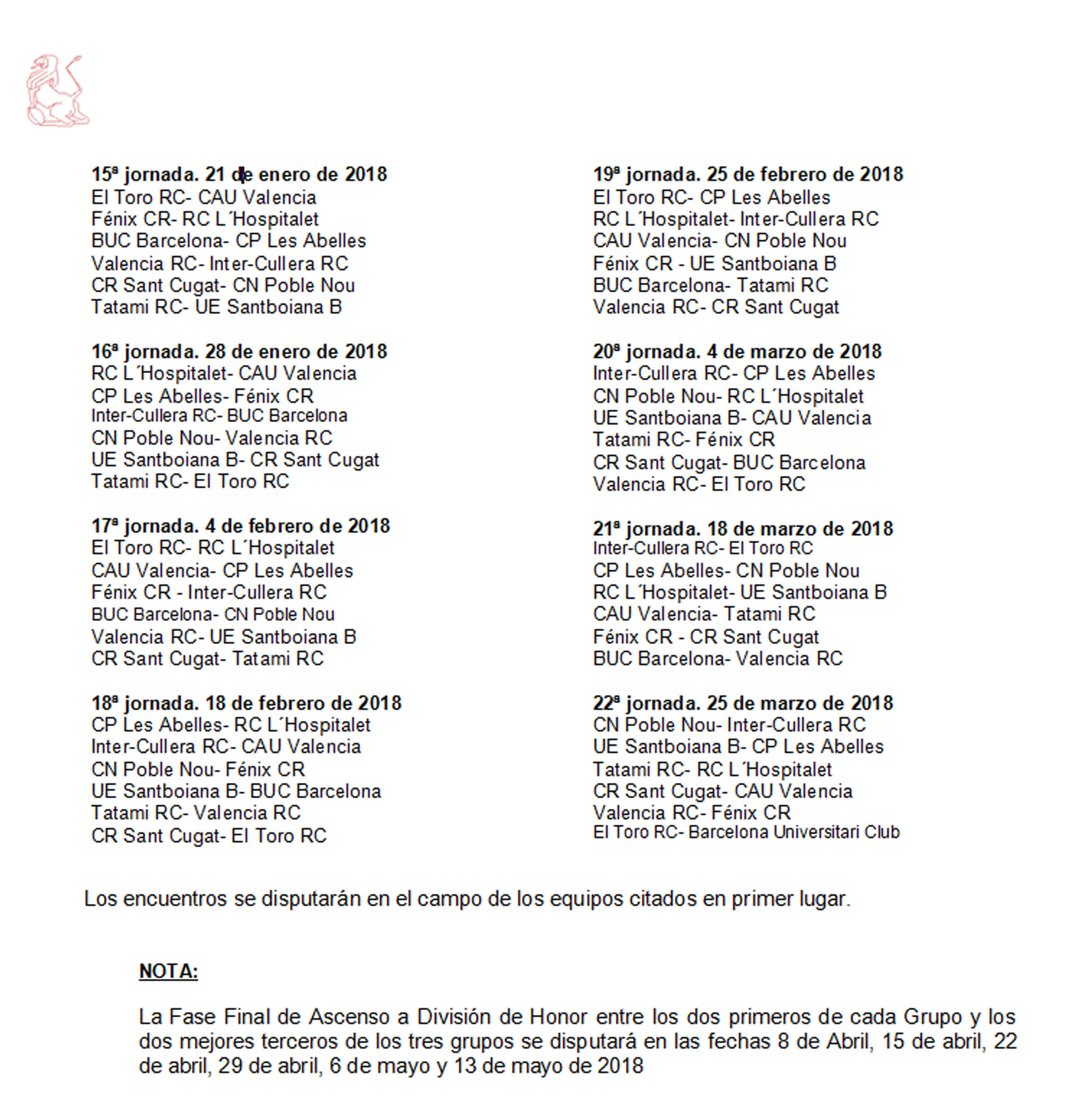 Menos de dos meses restan para el comienzo de Liga y ya conocemos los cruces y el calendario para la competición nacional de esta Temporada 2017/2018. Además se presentan varias novedades de especial relevancia para los equipos, como la clasificación para cuartos de final de la Copa de S.M. El Rey que se decidirá en la primera vuelta de Liga a partir de los partidos disputados contra los equipos que compartan un grupo previamente sorteado, o la disputa a ida y vuelta por primera vez de la División de Honor Femenina.