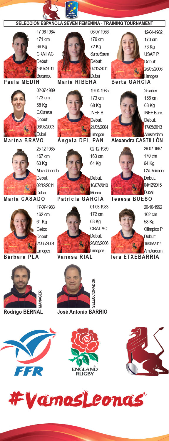 La Selección Española Femenina de Seven viajará hoy a Reino Unido para compartir con Inglaterra y Francia un training tournament en Guildford con mucho sabor olímpico, ya que francesas e inglesas están clasificadas para Rio 2016. El torneo amistoso, que se desputará del 22 al 24 de octubre, consistirá en una serie de entrenamientos y partidos entre las tres selecciones, que servirán a las Leonas para saber en que punto está su preparación de cara a las Seven Series, que comenzarán en diciembre, y de cara al torneo preolímpico de Junio 2016.