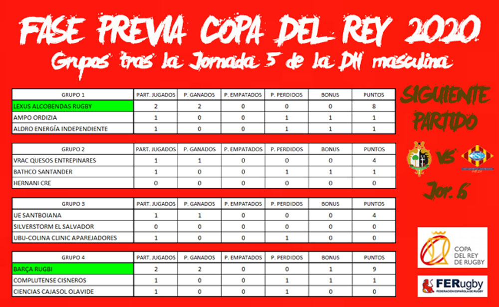 Con Lexus Alcobendas Rugby (G1) y Barça Rugbi (G4) ya clasificados para las semifinales del torneo copero, las próximas tres jornadas serán claves y pueden terminar de completar el cuadro, con muchas miradas puestas en lo que suceda este fin de semana en Valladolid.
