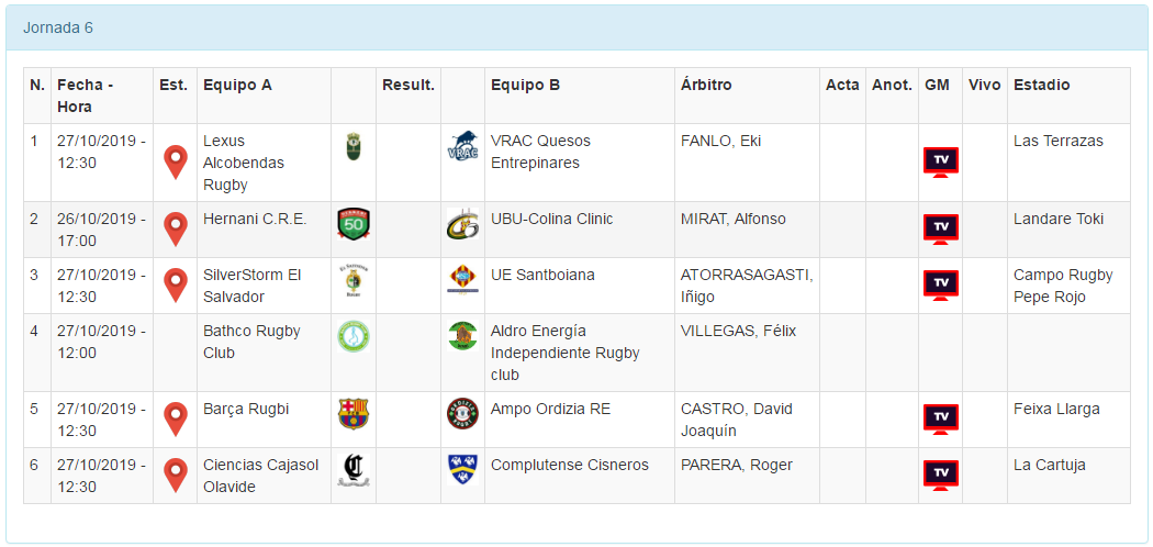*NOTA: En la jornada 6 también se disputa el Ciencias Cajasol Olavide vs CR Complutense Cisneros dentro de la fase de clasificación de la Copa, pero ninguno de los dos tiene ya opciones de meterse.