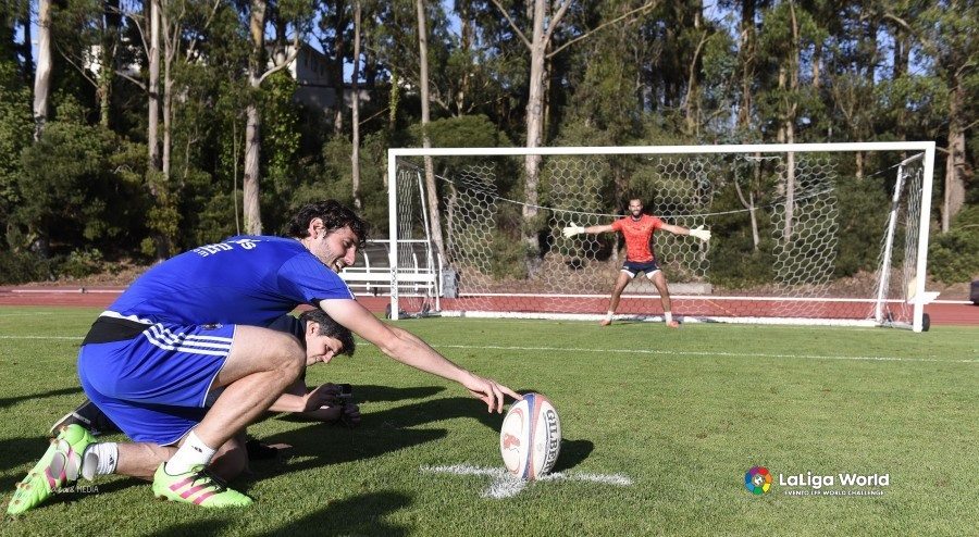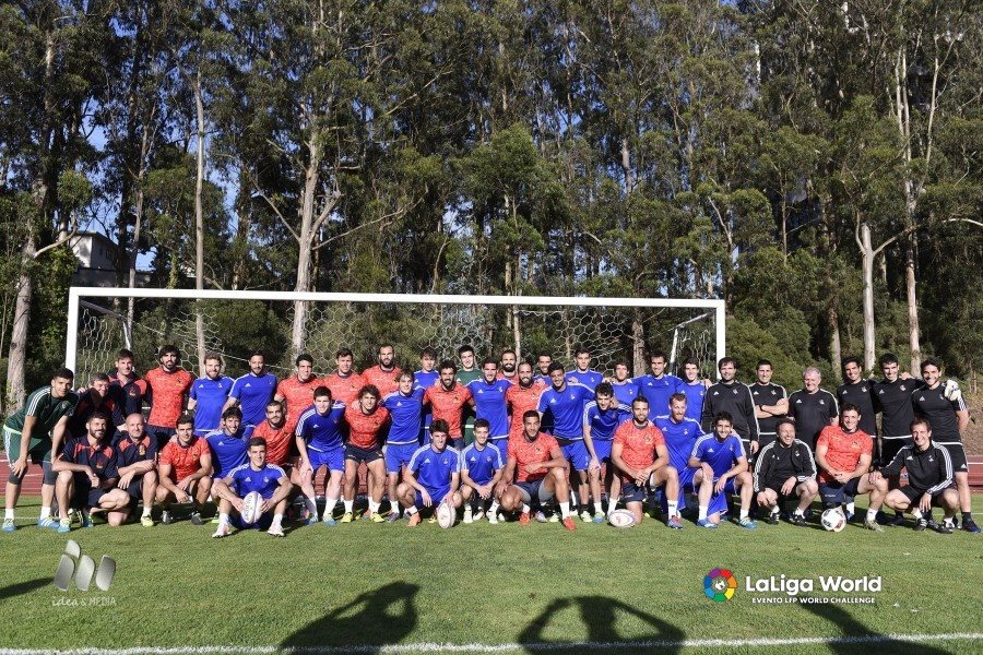 Los jugadores de la Selección Española Masculina de Seven han tenido hoy un entrenamiento diferente al probar que se siente cambiándo el balón oval por el esférico del fútbol. Y es que los Leones han compartido juegos con la Real Sociedad después de acabar sus respectivas sesiones de trabajo matinal. El equipo txuri urdin se encuentra en San Francisco preparando dos amistosos dentro de la gira LFP World Challenge.