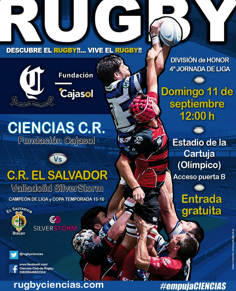 Ciencias Sevilla y SilverStorm El Salvador serán los encargados de inaugurar la nueva temporada en el Estadio Olímpico de la Cartuja disputando el partido correspondiente a la cuarta jornada adelantado al domingo a las 12:00 por los compromisos europeos del equipo chamizo. Así pues la vuelta del conjunto andaluz a la máxima categoría del rugby español será por todo lo alto: en un estadio olímpico, en su ciudad, disputando el único encuentro oficial de Liga del fin de semana y ante el vigente campeón de Liga y Copa.