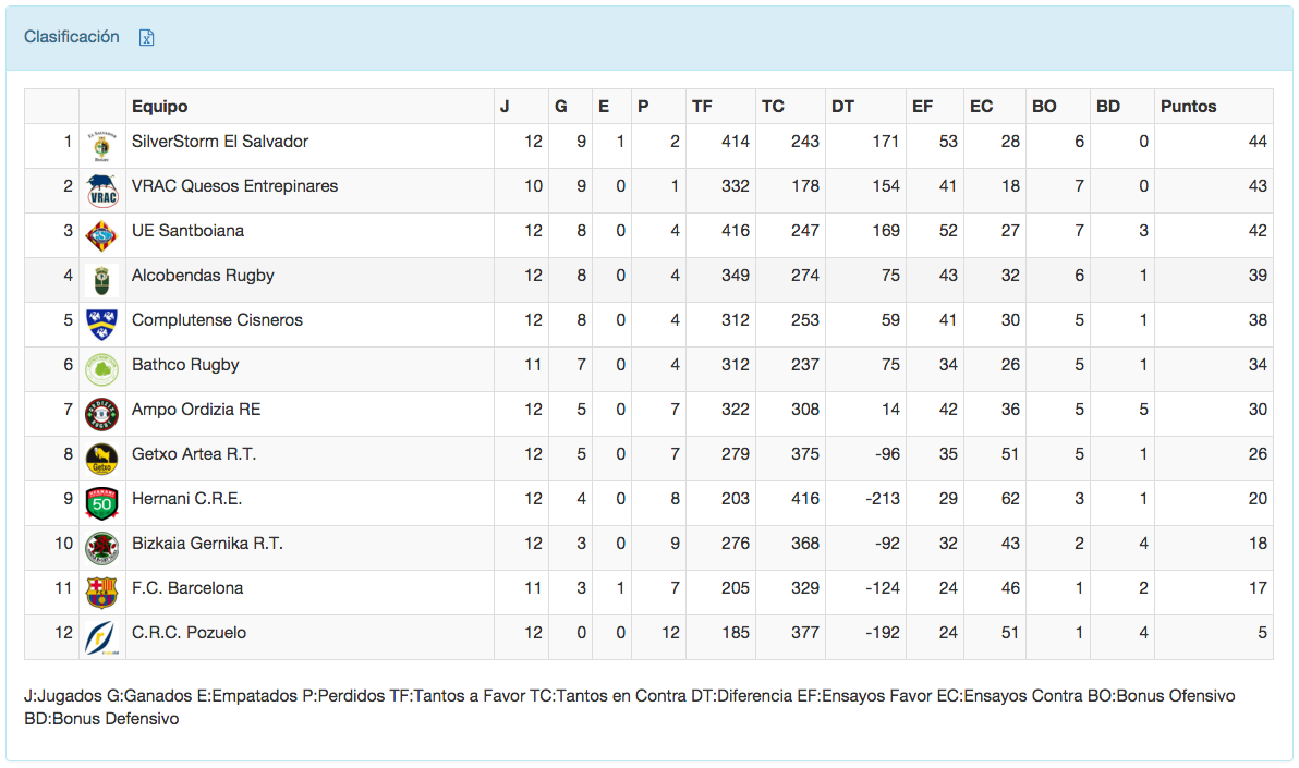 El resto de la jornada se jugará el domingo donde los más madrugadores serán la UE Santboiana y Ampo Ordizia que a las 12:00 se enfrentarán en el Baldiri Aleu. Los tres partidos restantes se jugarán a las 12:30 donde llama la atención el duelo entre el líder, SilverStorm El Salvador y la revelación, Alcobendas Rugby, ya que en la ida los pupilos de Tiki Inchausti dieron la primera de muchas campanadas, ganando a los chamizos y seguro que en el Pepe Rojo lo volverán a intentar. Hernani recibe en Landare Toki al VRAC Quesos Entrepinares que vuelve a la competición después de su buena actuación en Europa y donde tratará de recuperar el liderato, que perdió por tan sólo un punto pese a llevar dos partidos menos. Y, por último, en San Román el Bathco Rugby recibe al FC Barcelona donde tratará de reengancharse al grupo de perseguidores de los líderes.